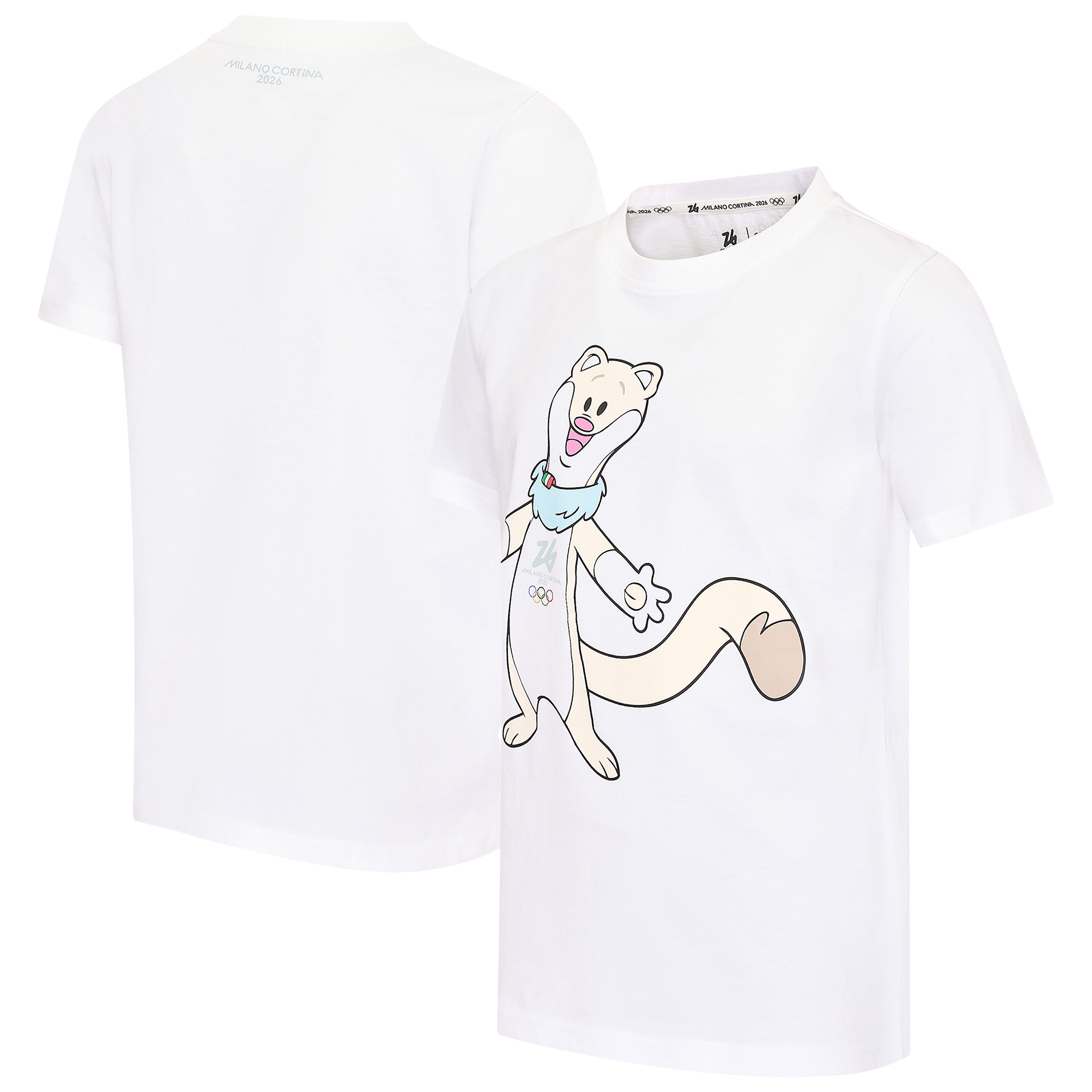 "Milano Cortina Olympische Spiele 2026 Tina Maskottchen-T-Shirt – Weiß – Kindergröße"