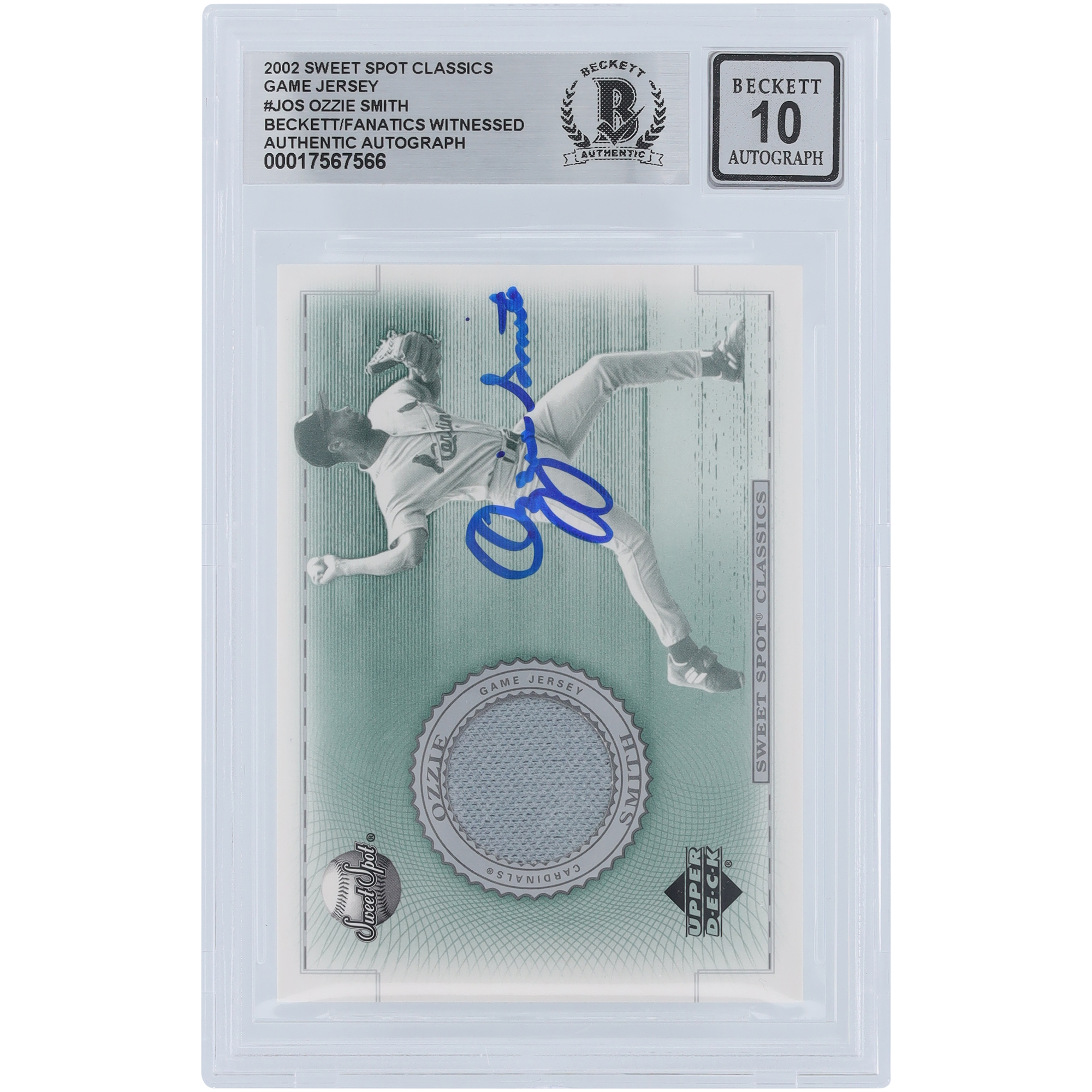 "V106832 SLCard Ozzie Smith St. Louis Cardinals Autogramm 2002 Upper Deck Sweet Spot Classic Game Jersey Relic #J-OS Beckett Fanatics Zeuge authentifizierte 9/10 Karte Ozzie Smith AUT UPD TRADING CARDS 45646 AUTTRC CA01B00093"